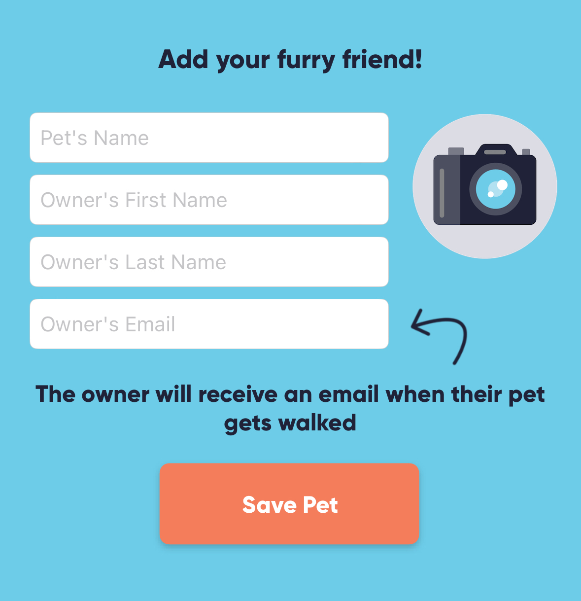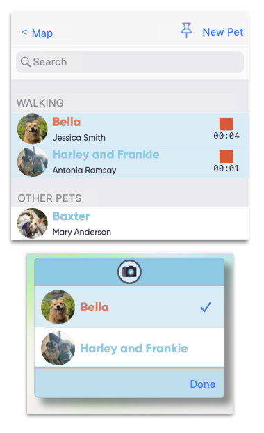 Add the pet and client info, and that pet will be available for walks or house visits from your list of pets.