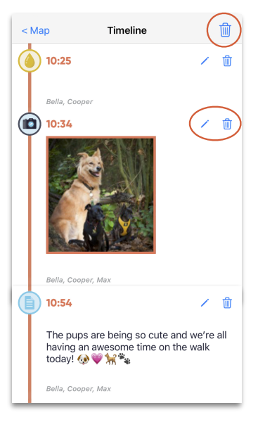 From here you can delete the entire walk (helpful in case you started with the wrong pet).