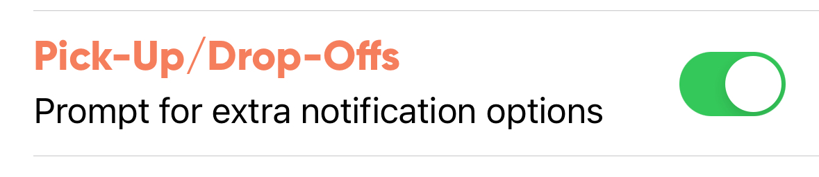 To turn on these extra prompts, go to Settings and set Pick-Ups / Drop-Offs to on.